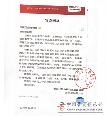 此外,业主要求湖南保利地产与政府及开发商协商,撤销关于高桥单元控规G03-F12地块、火车站单元控规Z10-D43地块控制性详细规划修改的变更并发布公告, 恢复2.3万平方米砂子塘品牌小学的建设。