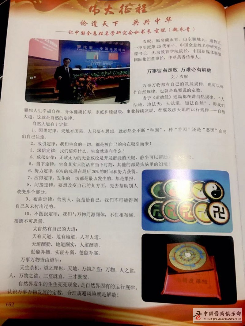 魏永青先生,笔名玄贶,道名法珅,道教正一净明派第二十六代弟子,中国全息姓名学研究会秘书长,无为学院院长,中国新媒体联盟国际集团董事长,中草药香传承人。