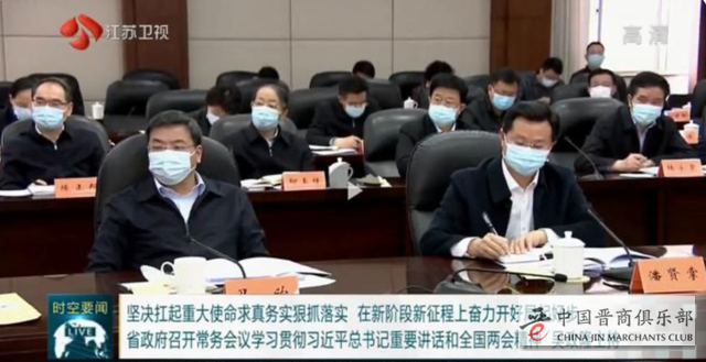 3月15日,江苏省省长吴政隆主持召开省政府常务会议。江苏卫视画面显示,山西省财政厅党组书记、厅长潘贤掌出席会议,与江苏省省长吴政隆,副省长樊金龙、陈星莺、赵世勇、惠建林、马欣,新任江苏省政府党组成员齐家滨以及省政府秘书长陈建刚等同桌就坐。