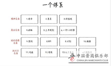 第一个层面,叫精神层面,包括1.使命、2.愿景、3.价值观。