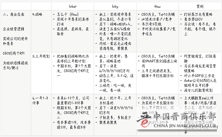 一个是CEO开好公司例会,通过跟进各部门负责人的KPI进展,来实现公司的三年长期目标和一年短期目标。