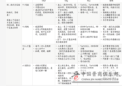 经过前期的准备,每个班子成员都要约CEO一起坐下来,把自己手里的一副牌过一遍。要讨论对每个人的看法,下一步打算,并存档和跟进。