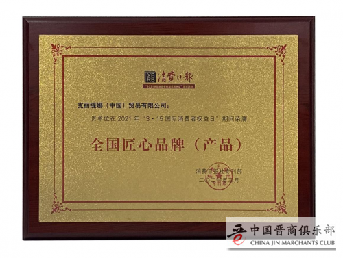 (克丽缇娜荣膺“2021全国3.15匠心品牌(产品)”)