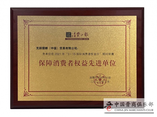 (克丽缇娜荣膺“2021消费者权益先进单位”)