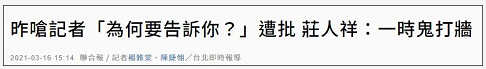 更令人啼笑皆非的是,庄人祥16日解释自己是一时鬼打墙,“抱歉,今天我可以再说明,都可以”。至于是否因为压力太大?他又感谢起了大家关心。这到底是哪部电视剧的“温情”剧情……