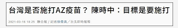 16日,陈时中在被媒体问到阿斯利康疫苗安全性时又称,疫苗是安全的,程序上没受影响,等到3月17日“食药署”检验完成后,才要考虑是否开打问题,检验完2天内会开专家会议,就现在国际情况做整体研判,再向大家报告。“目标是要施打。”