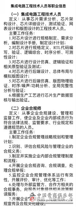 3月18日,人社部等三部门发布18个新职业:集成电路工程技术人员、企业合规师、公司金融顾问、易货师、二手车经纪人、汽车救援员、调饮师、食品安全管理师、服务机器人应用技术员、电子数据取证分析师、职业培训师、密码技术应用员、建筑幕墙设计师、碳排放管理员、管廊运维员、酒体设计师、智能硬件装调员、工业视觉系统运维员。