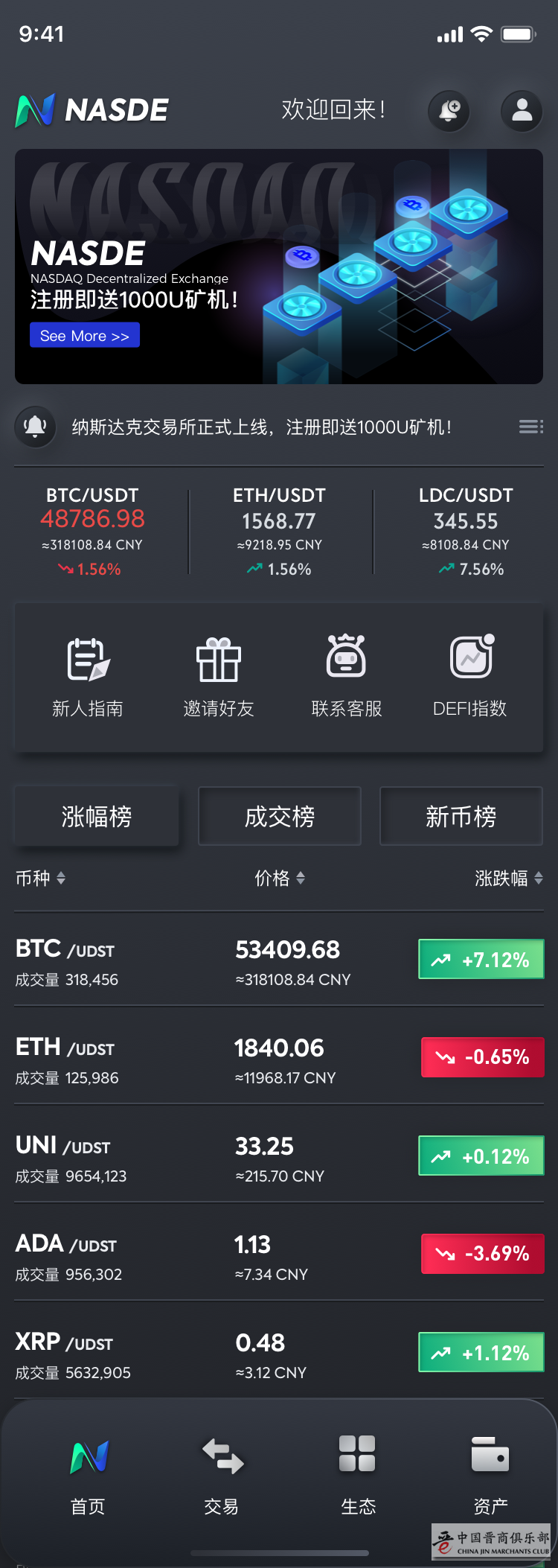 纳斯达克去中心化交易所4月上线,拥有CGLDM映射发行LDC通证的蓝鼎会员,将是第一个吃螃蟹的人!