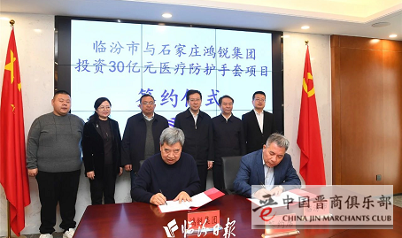 3月18日至19日,临汾市委书记董一兵带队赴河北石家庄鸿锐集团、邢台旭阳集团考察,并与鸿锐集团签订投资30亿元医疗防护手套项目。副市长张翔,市政协副主席王金龙,鸿锐集团董事长刘贵喜,旭阳集团董事长杨雪岗,临汾市委办公室、市促进外来投资局、市商务局、襄汾县、古县、大宁县及交通银行临汾分行、山西宏源焦化集团负责人参加考察。