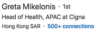 举个例子,比如说招我进Mercer 的领导 Greta,就是500+ Connection(联系人)
