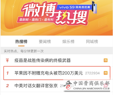 冲上热搜!苹果因不附赠充电头被罚200万美元(约合1300万元人民币)。