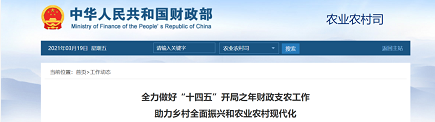 习近平总书记强调,民族要复兴、乡村必振兴。全面建设社会主义现代化国家,实现中华民族伟大复兴,最艰巨最繁重的任务依然在农村,最广泛最深厚的基础依然在农村。2021年中央一号文件指出,新发展阶段“三农”工作依然极端重要,须臾不可放松,务必抓紧抓实。2021年,财政部农业农村司将坚持以习近平新时代中国特色社会主义思想为指导,立足新发展阶段,贯彻新发展理念,构建新发展格局,充分发挥财政职能作用,着力完善财政支农政策,积极创新财政支农机制,不断强化财政支农资金管理,加快推进巩固拓展脱贫攻坚成果与乡村振兴有效衔接,加快推动乡村全面振兴,加快推动农业农村现代化,促进农业高质高效、乡村宜居宜业、农民富裕富足,为全面建设社会主义现代化国家开好局、起好步提供有力支撑,以更加优异的成绩向建党100周年献礼。