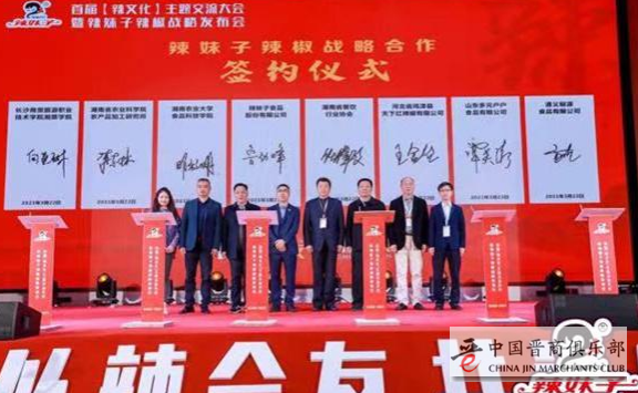 现场,辣妹子与湖南航空签订餐食合作协议,推出了三款联名辣酱作为机上餐食提供给旅客;此外辣妹子食品与湖南农业大学食品科技学院、湖南省餐饮行业协会等七家组织企业举行了战略合作签约仪式,这是一次社会各方面力量的凝聚,在未来也能充分发挥桥梁和纽带作用,推动行业的高质量发展。