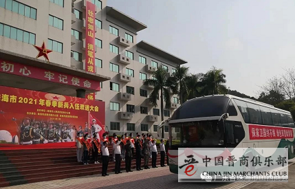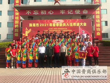 保家卫国终不悔,绿色军营献青春。3月20日,珠海警备区广场锣鼓喧天,狮舞欢腾。珠海市征兵办、市双拥办、市爱国拥军促进会联合举行“珠海市2021年春季新兵入伍欢送大会”。在珠海市山西商会(中国晋商俱乐部联合发起机构)会长闫国军的组织带队下,商会成员、威风锣鼓队共同参加。商会威风锣鼓队为准备踏上征程的新兵队伍打起了山西锣鼓,点燃了入伍青年的青春热血。入伍新兵们在欢送声中,开始光荣的从军路。