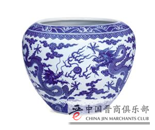 清乾隆 御制青花海水云龙赶珠纹钵盂式大卷缸