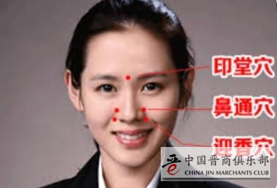 迎香穴:位于鼻唇沟中,鼻翼外缘的中点处。经常按摩这个穴位可疏散风热,通利鼻窍,帮助患者缓解鼻塞的症状。