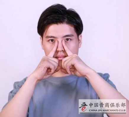 用中指指腹按揉迎香穴、鼻通穴和印堂穴各半分钟。