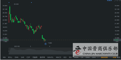 上图为:中概股亿航股价走势