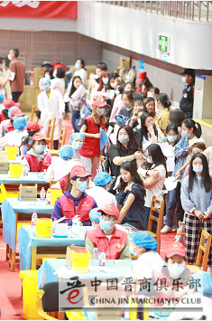 ▲山西大学文体馆,现场接种疫苗的师生井然有序。