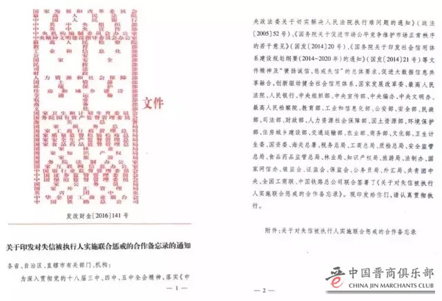 《关于印发对失信被执行人实施联合惩戒的合作备忘录的通知》(下称《备忘录》)