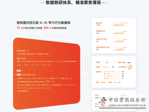 此外,在教研层面,猿辅导研发百亿级学习行为数据库,为个性化教学提供支撑。一方面,猿辅导网课借助学生学习行为数据库,帮助教师个性化分析学生学习情况,为学生匹配针对性的题目进行练习,提升学生学习效率。另一方面,猿辅导网课通过学习行为数据库挖掘学生难点,从而反哺教师教学,让学生学习更加高效。