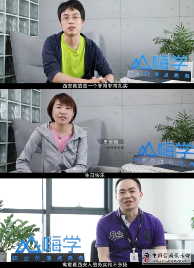 同时,嗨学总经理吕敏先生、助理副总裁王丽媛女士、副总裁崔浩波先生也通过视频送上来自总部北京的祝福,祝贺西安中心成立两周年快乐!