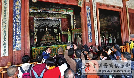 4月5日,晋祠博物院,游客们在圣母殿前参观游览。牛晨阳 摄
