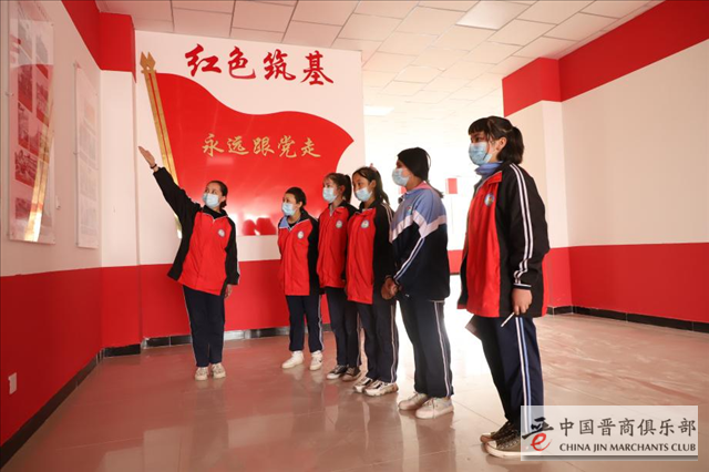 新疆疏附三中穗疏共建“红色筑基”爱国主义教育基地里,由共青团员和少先队员组成的“红孩儿”宣讲员,在认真地向学校老师和同学做解说