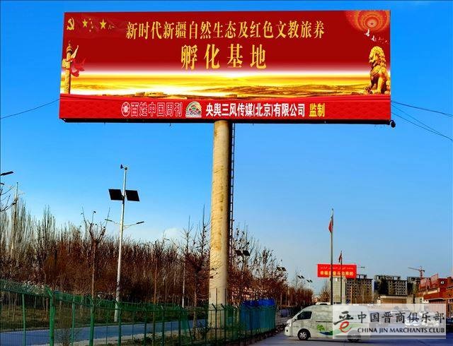 新疆喀什地委、行署、宣传、文旅部门在显著地段免费为《新时代新疆自然生态及红色文教旅养孵化基地》提供的宣传展板