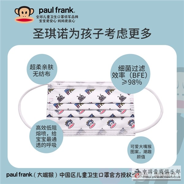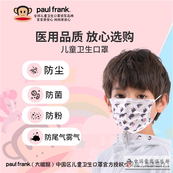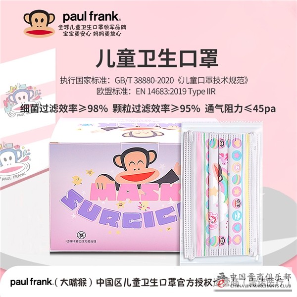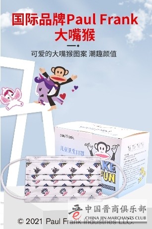 充分的肯定了Paul Frank大嘴猴在孕婴童市场的知名度和影响力,她将会成为引领防疫口罩行业健康持续发展的优秀品牌。