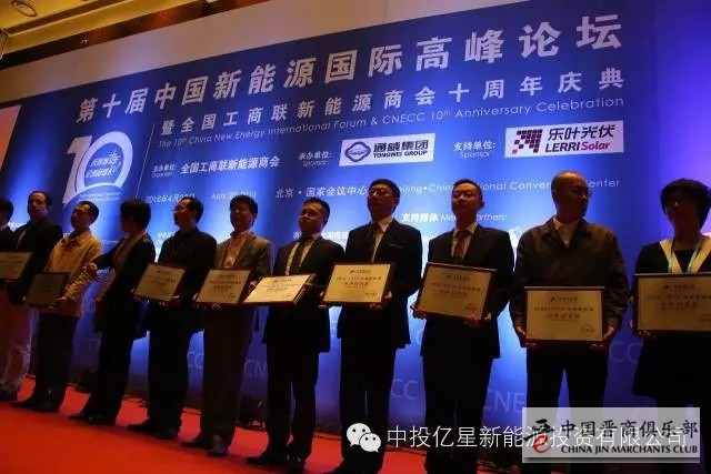 中投亿星荣获第十届中国新能源国际高峰论坛”十年创新奖“