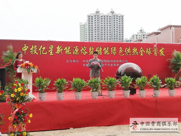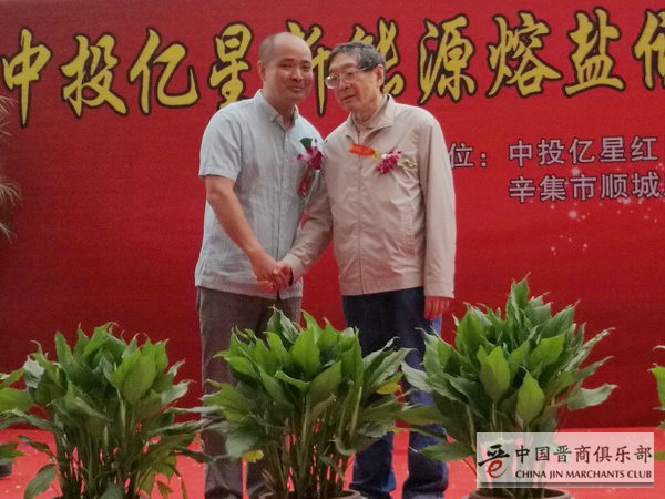 熔盐储能技术首席科学家北京工业大学教授马重芳与中国晋商俱乐部发起理事、中投亿星新能源投资有限公司董事长李亚斌等出席。