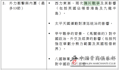 香港学校历史课堂屡屡出现偏颇内容。香港《大公报》2019年报道,香港浸会大学附属学校王锦辉中小学的中国历史科九年级阅读材料,公然宣称鸦片战争源于中英出现政治、贸易体制和司法制度冲突,只字不提英国大量输入鸦片令中国大量白银外流、鸦片毒祸令中国人沉沦,反指中国“傲慢”。