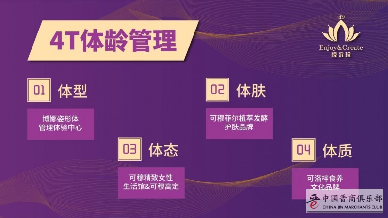 对此,悦尔珍集团CEO王钰涵就提出了4T体龄管理的理念,即实现体肤、体态、体质和体型四大精准管理。为了帮助更多的女性获得“健康化和年轻态”的美,悦尔珍集团还特别成立了专门的团队,针对体肤、体态、体质和体型这四个维度,提供系统化和行之有效的方法。