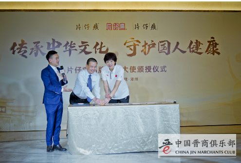 活动现场举行了隆重的“传承中华文化 守护国人健康”片仔癀品牌大使授勋仪式,漳州片仔癀药业股份有限公司总经理黄进明为仪式发表致辞,黄总表示,片仔癀团队由衷敬重郎导代表和传承的中国女排精神,中国女排让中国骄傲,中医药让世界瞩目,经过新冠肺炎的大考,中医药更加大放光彩。片仔癀愿与郎平女士共话健康事业、共筑民族品牌、以工匠精神精神作大国品质、以创新意志铸长盛基业。为了感谢郎导对片仔癀企业的信任,片仔癀为郎导送上了一份特别的荣誉——授予朗导“片仔癀品牌荣誉大使”称号。同时,片仔癀也预祝中国女排2021东京奥运会再攀高峰,“旗开得胜”!