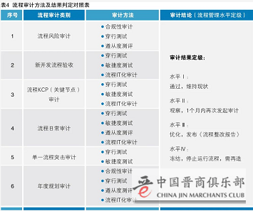 其三,与部门绩效挂钩,流程审计要纳入各业务部门的绩效考评中,让流程管理责任归位,没有问责机制的流程审计工作,最终只能流于形式。