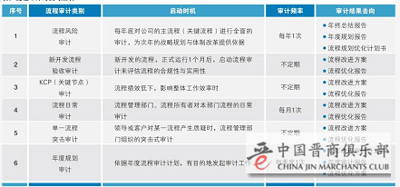 其二,流程审计最好在公司的年度总结、战略会议前实施,这样可以将流程审计报告在年度会议上宣读,及时将流程审计结果编入公司的战略与经营计划之中。