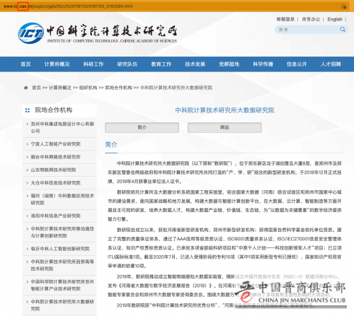 在中国科学院计算技术研究所官网中,有对“中国科学院计算技术研究所大数据研究院”的详细介绍,同时网站的域名与“中国科学院”的域名一致。