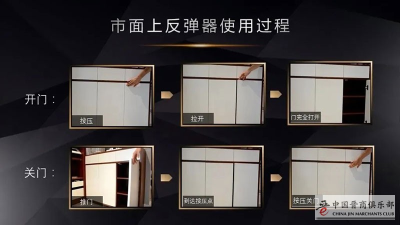 传统的柜门无拉手设计是安装反弹器或是碰珠,在开关门步骤上共需六步,而炬森自动开门器,仅需两个步骤就可使柜门“一触即开,一推即关”,尤其是在双手都拿着东西时,亦可以方便开门。