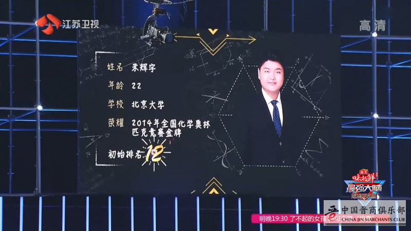“如果你实力不行,你需要方法,如果你实力可以,就看。”当李诞问朱辉宇怎么做完一个嘉宾们以为没人能做出来的项目时,他说出了这句话。那时,我们已经可以看到了一个脑王的风范。这个被选手们称为“朱老板”的小胖子,每次比赛他总能冷静应对,即使大汗淋漓,我们也很难从他脸上看到慌张,一场一场,一步一步,他就这么沉着地保持在天梯榜单的第一榜上,蓄势待发。