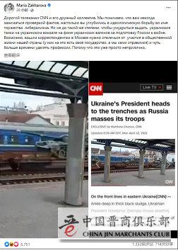 综合俄罗斯卫星通讯社和塔斯社13日报道,扎哈罗娃当天表示,在CNN原先的报道里,乌克兰火车站内的乌克兰坦克镜头,被描述成“俄罗斯的坦克被拉往乌克兰边境”。当天,扎哈罗娃在社交媒体上公布了有关影像资料,并指责CNN在其报道中,散布了“俄罗斯准备与乌克兰开战”的虚假信息: