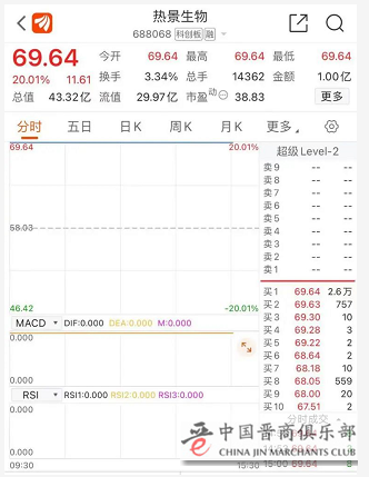 受此消息影响,今天热景生物开盘一字涨停,截至收盘,报69.64元/股涨20.01%,最新总市值43.32亿元。