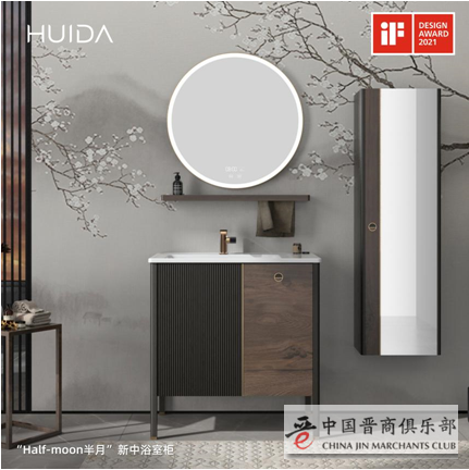 浴室柜在卫生间承担了主要的收纳作用,在浴室柜选择方面就会更谨慎一些,需要美观和实用兼具才行,而惠达“Half-moon半月”新中浴室柜就完美兼具这两者。大家肯定上学时期都学过苏轼的《水调歌头·明月几时有》 ,对诗句中的“月有阴晴圆缺”这句话一定不陌生,浴室柜的设计灵感就来自于这首诗词。这句诗词指出事物形态不是一成不变的,半月也同样具有独特的中式意境。设计将中式典雅风格与现代简约风格结合,呈现出不同的中式家具感受。不对称的门板分割打破了中式家具原有的对称美学,但是保留了彰显中式气质的胡桃木纹,“半月拉手”作为作品的点睛之笔,半镂空半镶嵌的中式传统工艺,搭配现代极简的外观形式,金色拉手精巧雅致,配合天圆地方的灯光镜及金属线条的点缀,折射出一款独特韵味的新中式家具。