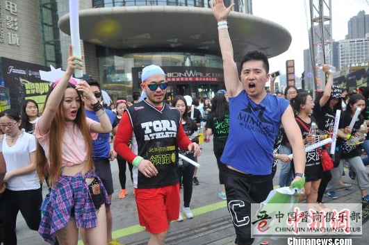 5月28日傍晚,山西太原北美新天地时尚广场,千余名“白领一族”排长队报名参加全程3.5公里的“炫彩夜跑”,通过周末运动释放平日的工作压力