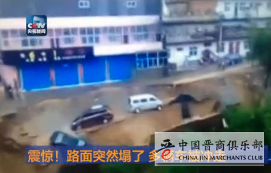 山西简讯:山西永和临河路面塌陷 多辆汽车被冲走