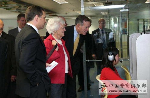 华尔街英语老员工Sophie Sophie(右一)为访华外宾演示课程