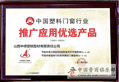 年会上,协会为获得“中国塑料门窗行业推广应用优选产品”的企业,进行了颁奖。中德公司自主研发的:节能环保三密封66四腔系列平开窗型材(S—II—B)、节能环保型材105系列推拉门窗型材(S—II—A )等门窗产品凭借优秀的品质和客户的口碑,获得此项荣誉。