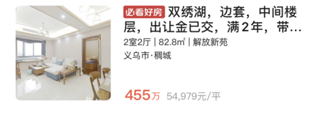 实际上,义乌目前部分二手房,房东挂牌价也已经有不少4万+,5万+的出现。