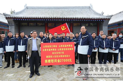 4月25日,山西省浙江商会党总支、山西省温州商会党支部、太原市温州商会党支部、山西省浙江商会新生代联合会、山西省温州商会新生代联合会、太原市温州商会新生代联合会共同组织全体党员、会长们和入党积极分子等70余人,赴古交市开展参观晋绥八分区旧址暨慰问古交市建国前入伍在乡革命老战士活动。山西综改区生物医药与大健康产业招商服务中心非公党委领导应邀参加了这次活动。活动启动仪式由商会党总支书记孔美翠主持。