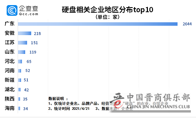 从地域分布来看,数据显示,广东省拥有最多的硬盘相关企业,共2644家,其中深圳有2477家,其中深圳有2477家,占比全国总量的64.5%,安徽、江苏分别以218家、151家排名二三位。此外,山东、河北、河南、新疆等省份也超过了50家。